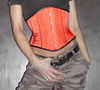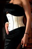 Bild zeigt das Modell in champagnerfarbenen Miederstoff mit kleinen glänzenden