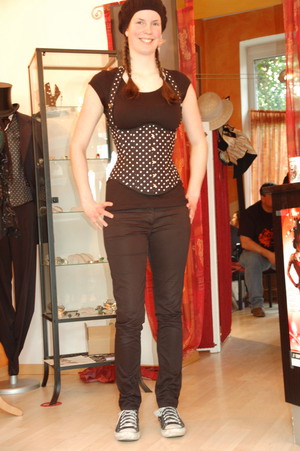 Beschreibung: ein Unterbrustkorsett in Polka dots und Neckholder